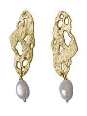 The earrings are equal in length but not the same in shape. Combined with a freshwater pearl, you have the perfect modern and elegant earring.